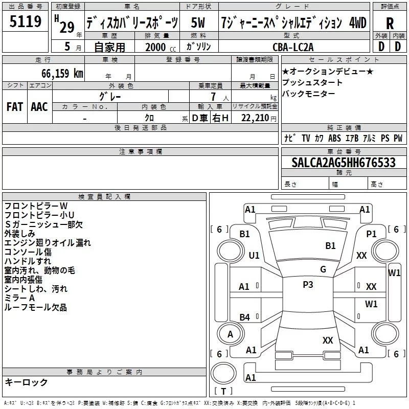 Rover DISCOVERY с аукциона Японии TAA Yokohama лот № 5119