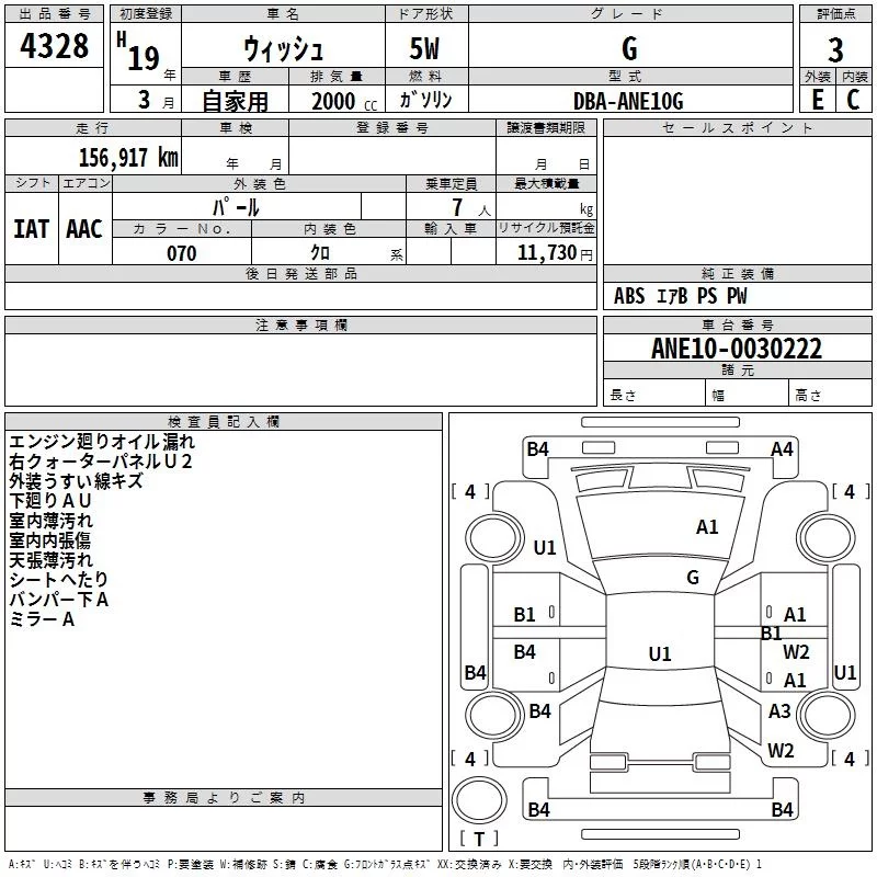 Toyota WISH с аукциона Японии TAA Yokohama лот № 4328