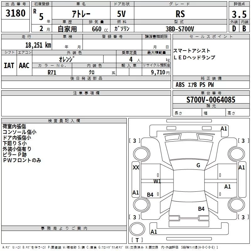 Daihatsu ATRAI VAN с аукциона Японии TAA Hyogo лот № 3180