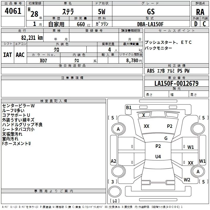 Subaru STELLA с аукциона Японии TAA Hyogo лот № 4061