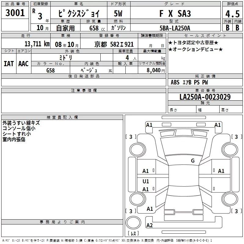 Toyota PIXIS JOY с аукциона Японии TAA Hyogo лот № 3001