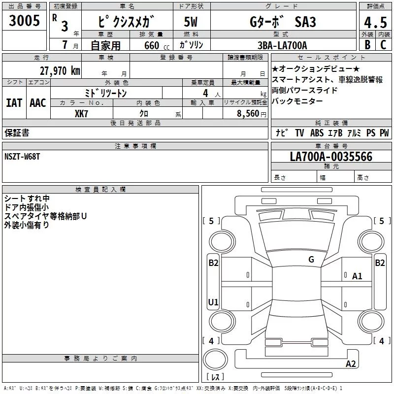 Toyota PIXIS MEGA с аукциона Японии TAA Hyogo лот № 3005