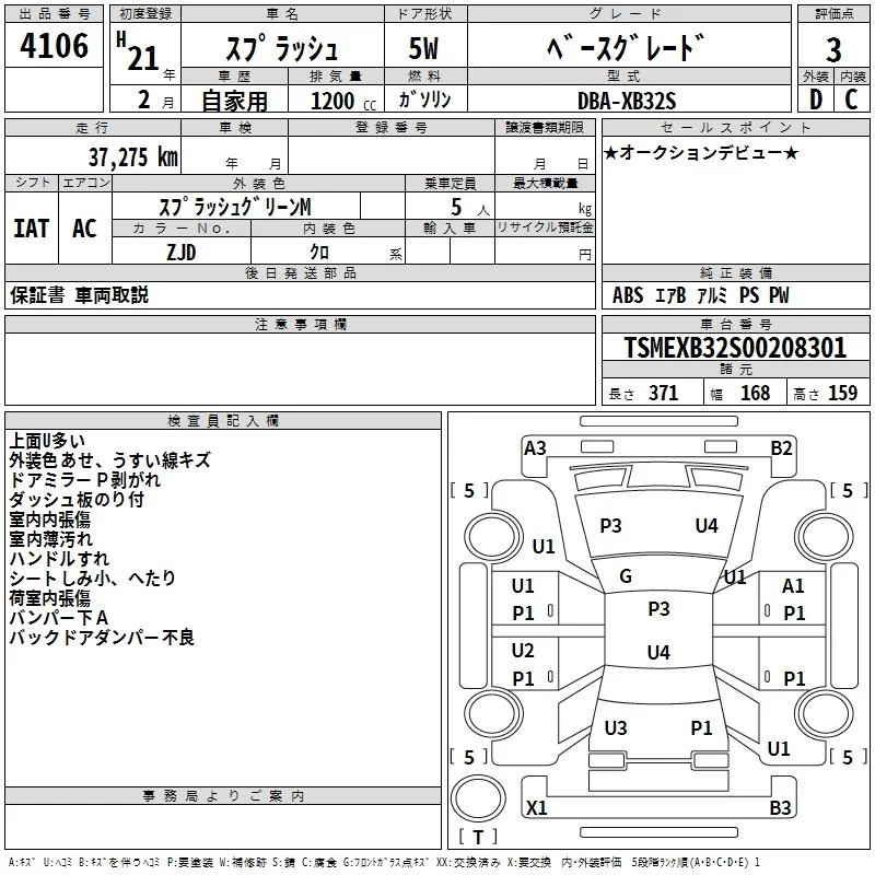 Suzuki SPLASH с аукциона Японии TAA Hyogo лот № 4106