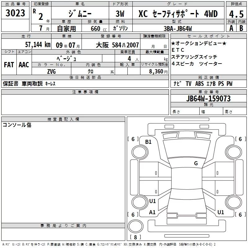 Suzuki JIMNY с аукциона Японии TAA Hyogo лот № 3023
