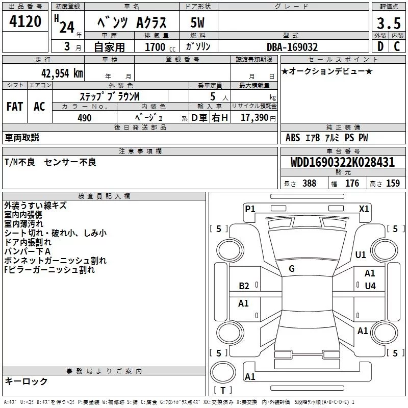 Mercedes-Benz A CLASS с аукциона Японии TAA Hyogo лот № 4120