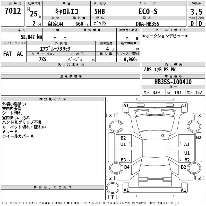 Mazda CAROL с аукциона Японии TAA Hyogo лот № 7012