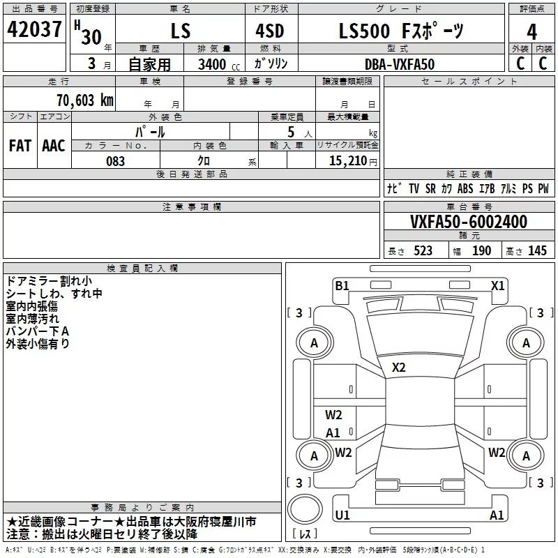 Lexus LS с аукциона Японии TAA Hyogo лот № 42037