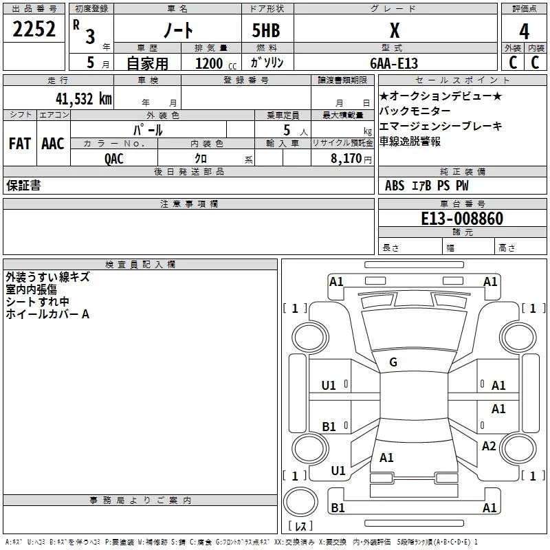 Nissan NOTE с аукциона Японии TAA Hyogo лот № 2252