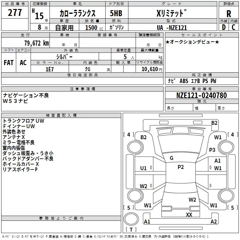 Toyota COROLLA RUNX с аукциона Японии TAA Hyogo лот № 277