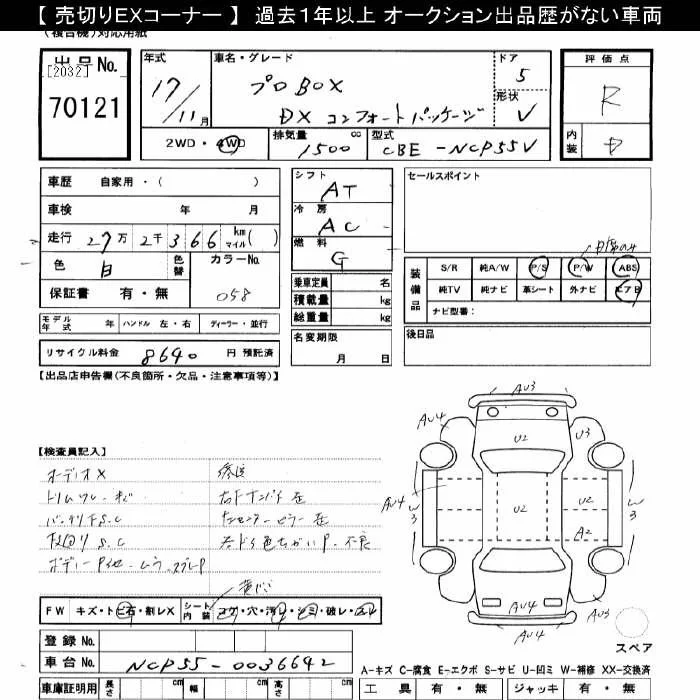 Toyota PROBOX с аукциона Японии JU Gifu лот № 70121