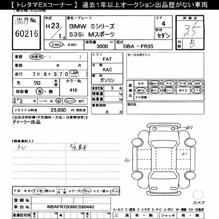 BMW 5-Series с аукциона Японии JU Gifu лот № 60216