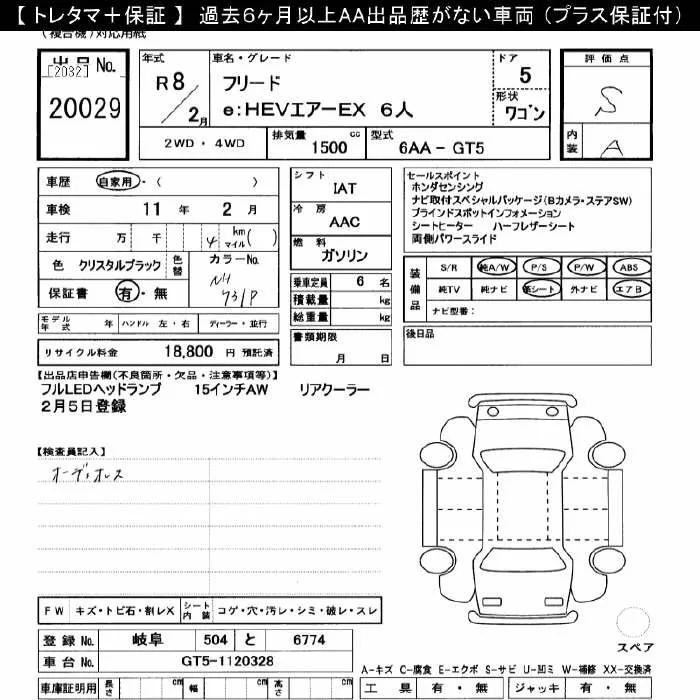 Honda FREED с аукциона Японии JU Gifu лот № 20029