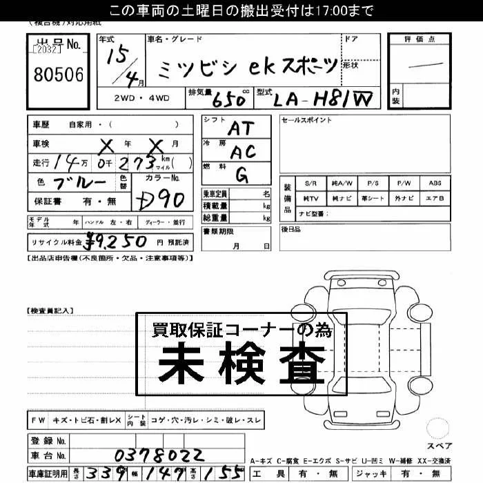 Mitsubishi EK SPORTS с аукциона Японии JU Gifu лот № 80506