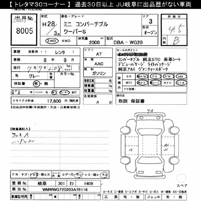 BMW MINI с аукциона Японии JU Gifu лот № 8005