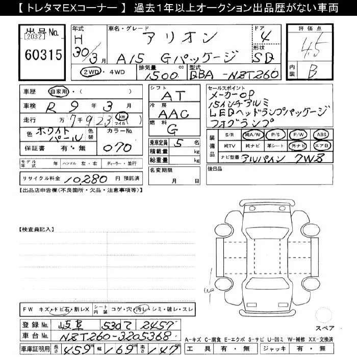 Toyota ALLION с аукциона Японии JU Gifu лот № 60315