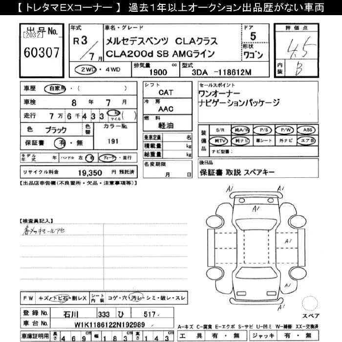 Mercedes-Benz CLA CLASS с аукциона Японии JU Gifu лот № 60307