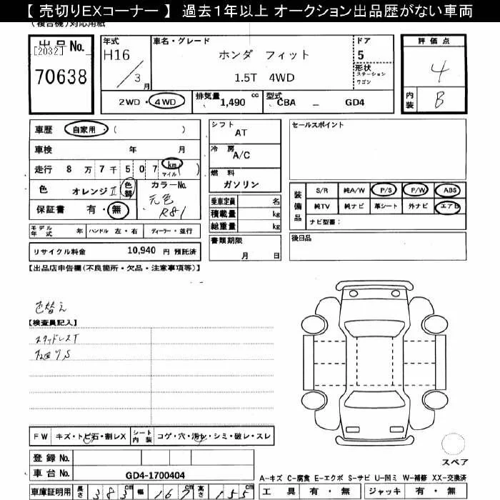 Honda FIT с аукциона Японии JU Gifu лот № 70638