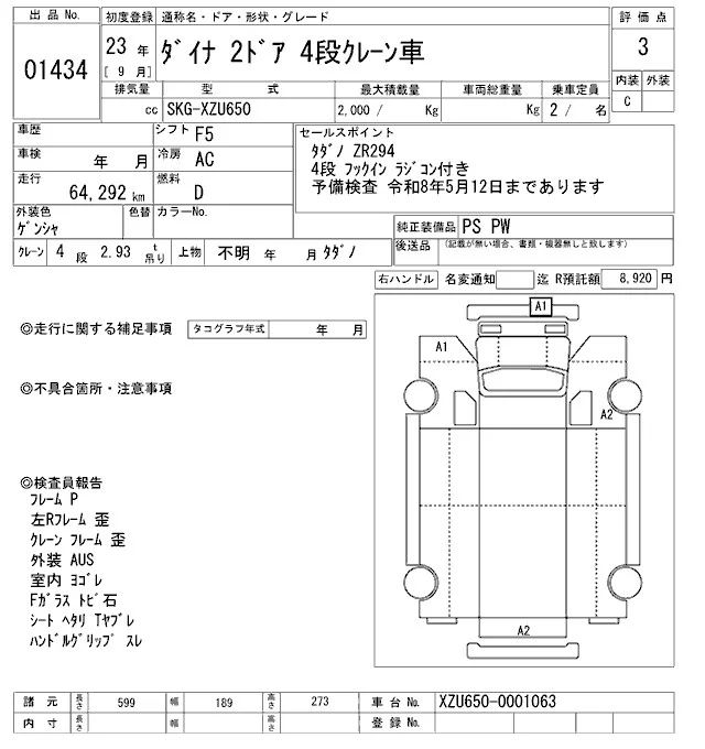 Toyota DYNA с аукциона Японии ARAI Oyama VT лот № 1434