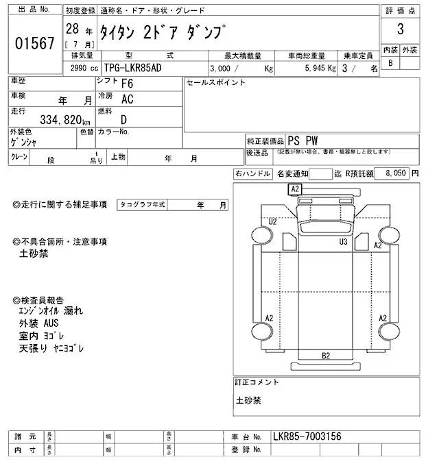 Mazda TITAN с аукциона Японии ARAI Oyama VT лот № 1567