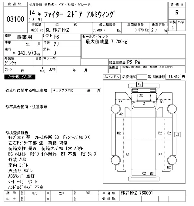 Mitsubishi FUSO FIGHTER с аукциона Японии ARAI Oyama VT лот № 3100