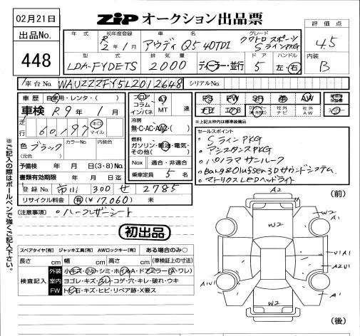 Audi Q5 с аукциона Японии ZIP Tokyo лот № 448