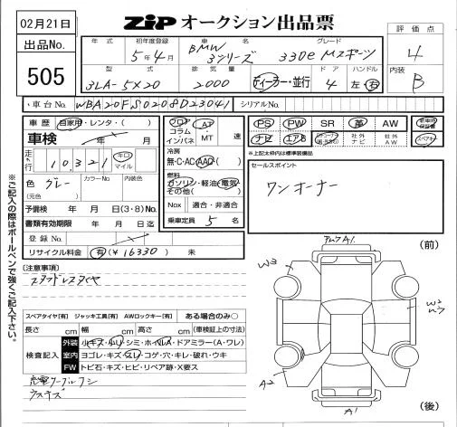 BMW 3-Series с аукциона Японии ZIP Tokyo лот № 505