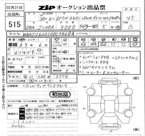 BMW 6-Series с аукциона Японии ZIP Tokyo лот № 515