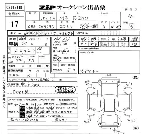 Mercedes-Benz B CLASS с аукциона Японии ZIP Tokyo лот № 17