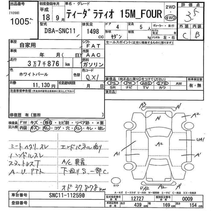 Nissan TIIDA LATIO с аукциона Японии JU Yamagata лот № 1005