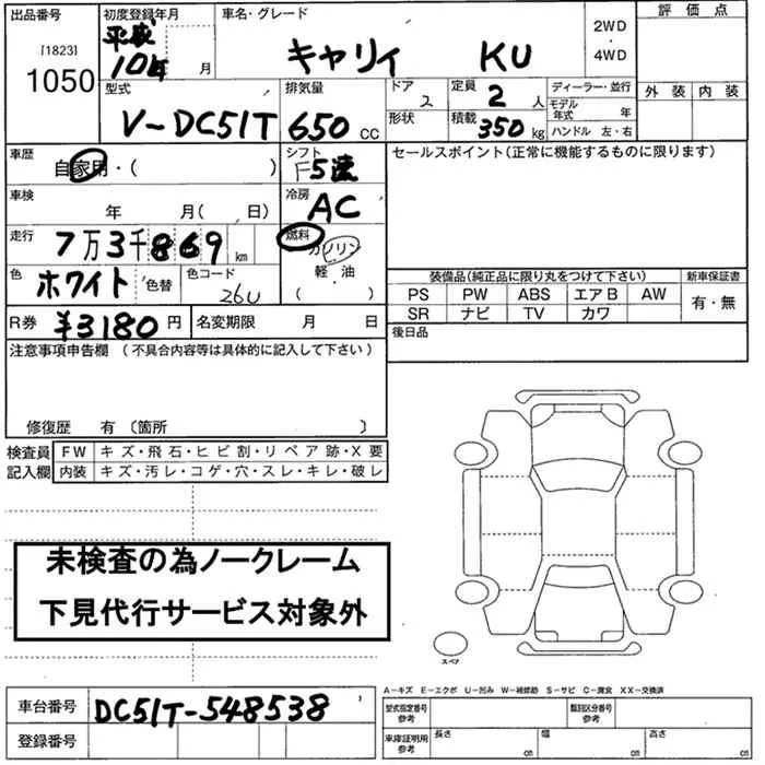 Suzuki CARRY TRUCK с аукциона Японии JU Nara лот № 1050