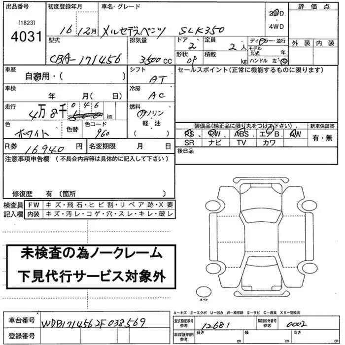 Mercedes-Benz SLK CLASS с аукциона Японии JU Nara лот № 4031