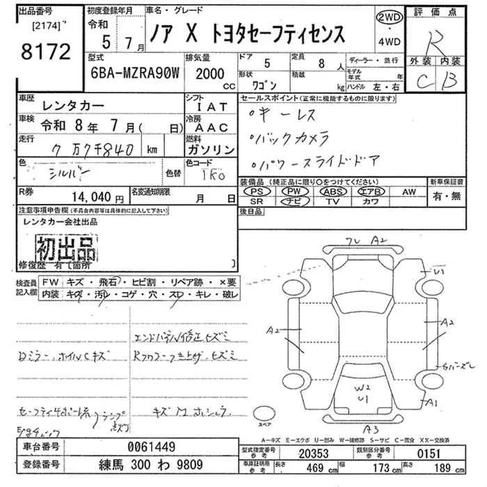 Toyota NOAH с аукциона Японии JU Tokyo лот № 8172