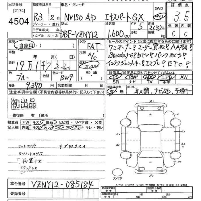 Nissan AD с аукциона Японии JU Tokyo лот № 4504