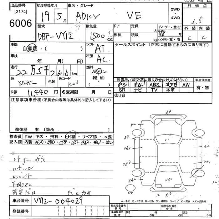 Nissan AD с аукциона Японии JU Tokyo лот № 6006