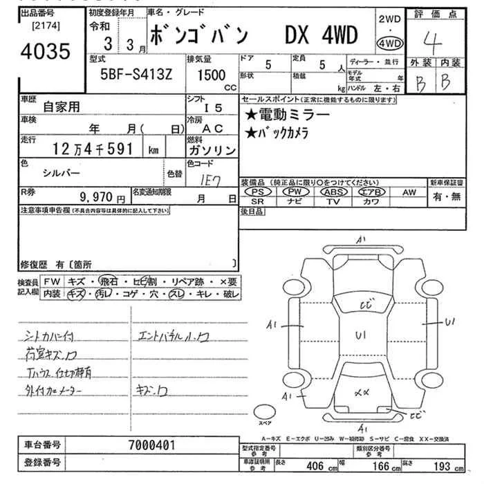 Mazda BONGO VAN с аукциона Японии JU Tokyo лот № 4035