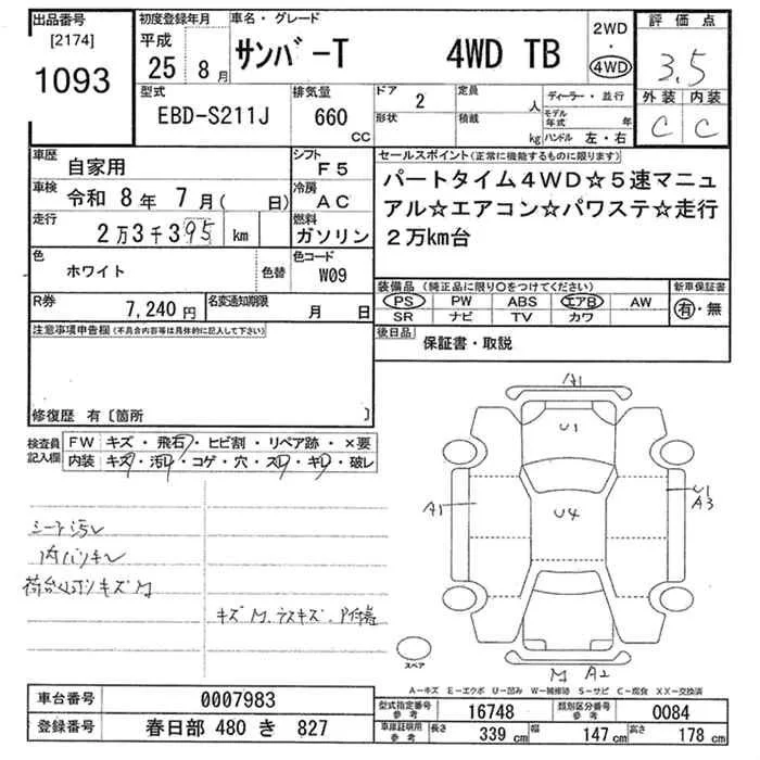 Subaru SAMBAR с аукциона Японии JU Tokyo лот № 1093