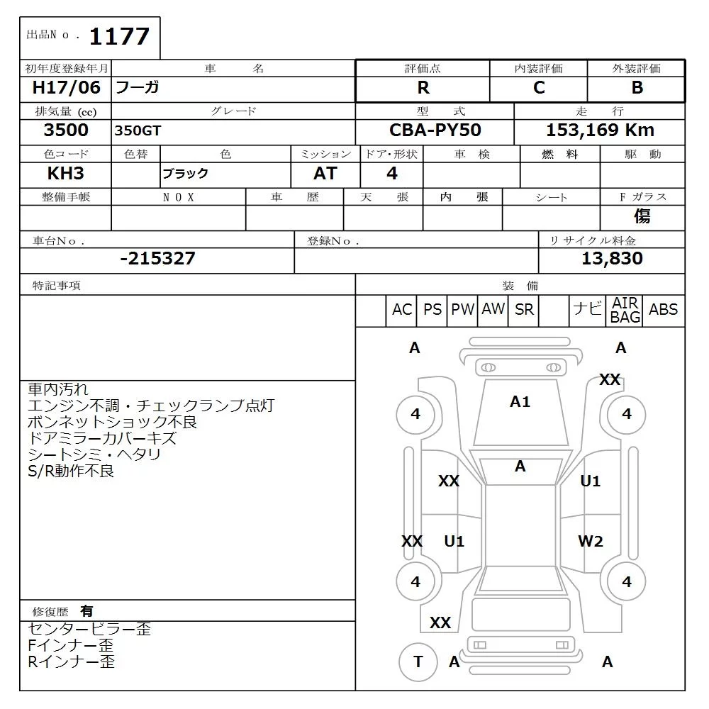 Nissan FUGA с аукциона Японии NISSAN Osaka лот № 1177