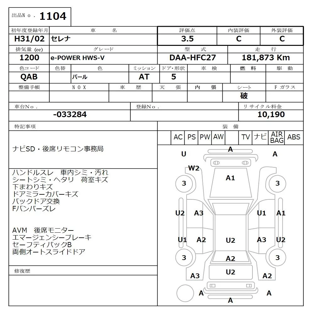 Nissan SERENA с аукциона Японии NISSAN Osaka лот № 1104