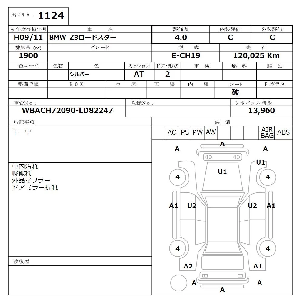 BMW Z3 SERIES с аукциона Японии NISSAN Osaka лот № 1124