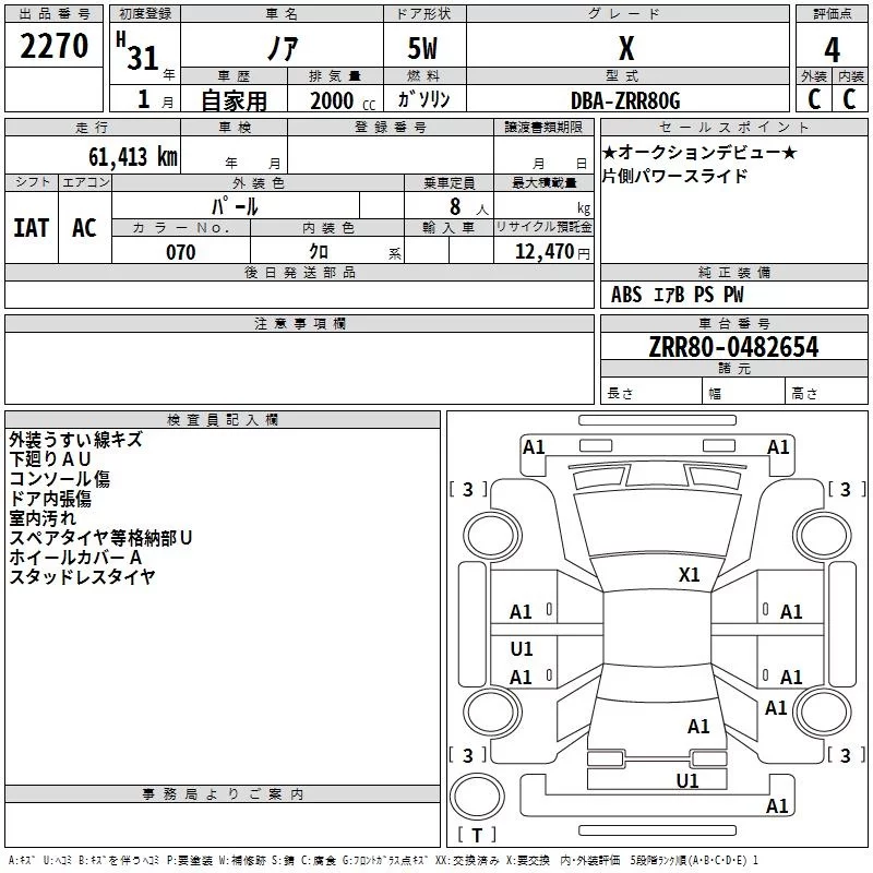 Toyota NOAH с аукциона Японии TAA Kinki лот № 2270