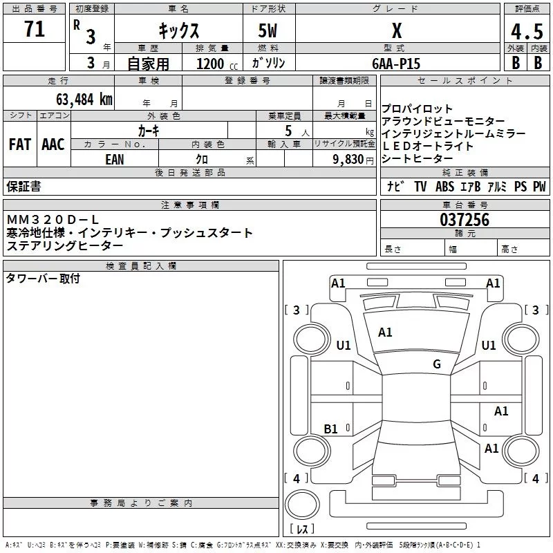 Nissan KICKS с аукциона Японии TAA Kinki лот № 71