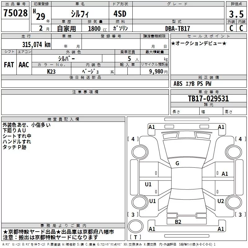 Nissan SYLPHY с аукциона Японии TAA Kinki лот № 75028