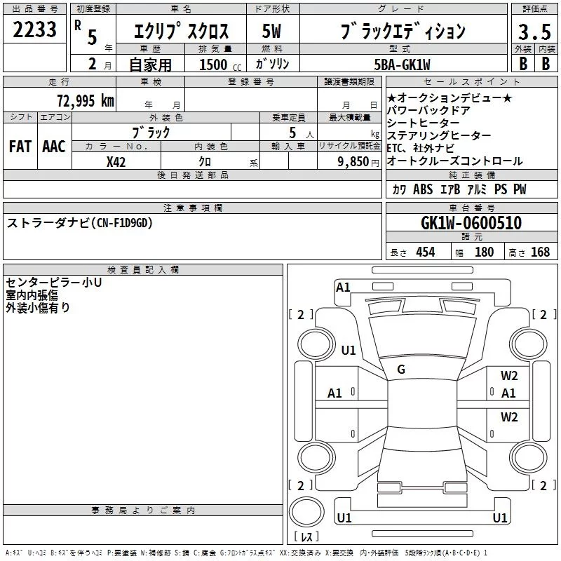 Mitsubishi ECLIPSE CROSS с аукциона Японии TAA Kinki лот № 2233