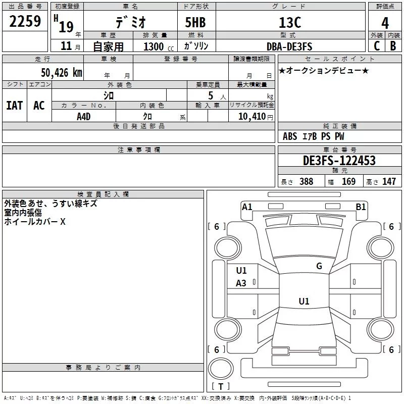 Mazda DEMIO с аукциона Японии TAA Kinki лот № 2259