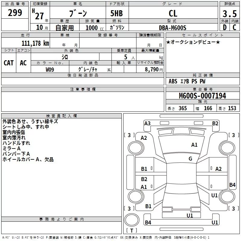 Daihatsu Boon с аукциона Японии TAA Kinki лот № 299