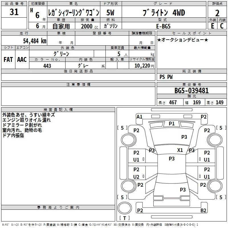 Subaru LEGACY с аукциона Японии TAA Kinki лот № 31