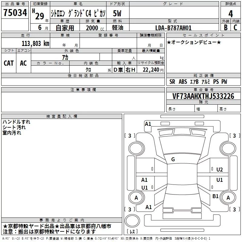 Citroen GRAND C4 с аукциона Японии TAA Kinki лот № 75034