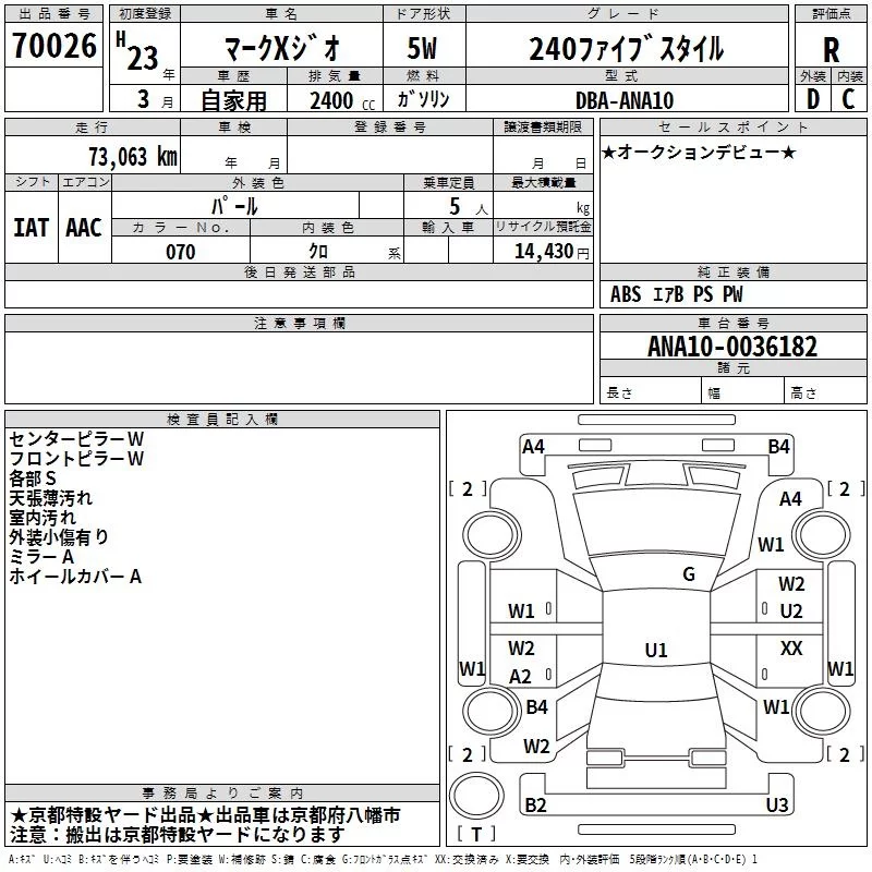 Toyota MARK X ZIO с аукциона Японии TAA Kinki лот № 70026