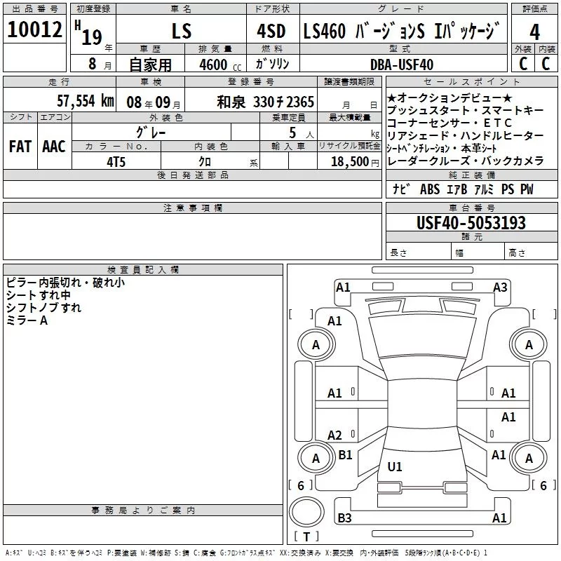 Lexus LS с аукциона Японии TAA Kinki лот № 10012