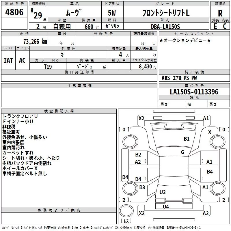 Daihatsu MOVE с аукциона Японии TAA Kinki лот № 4806